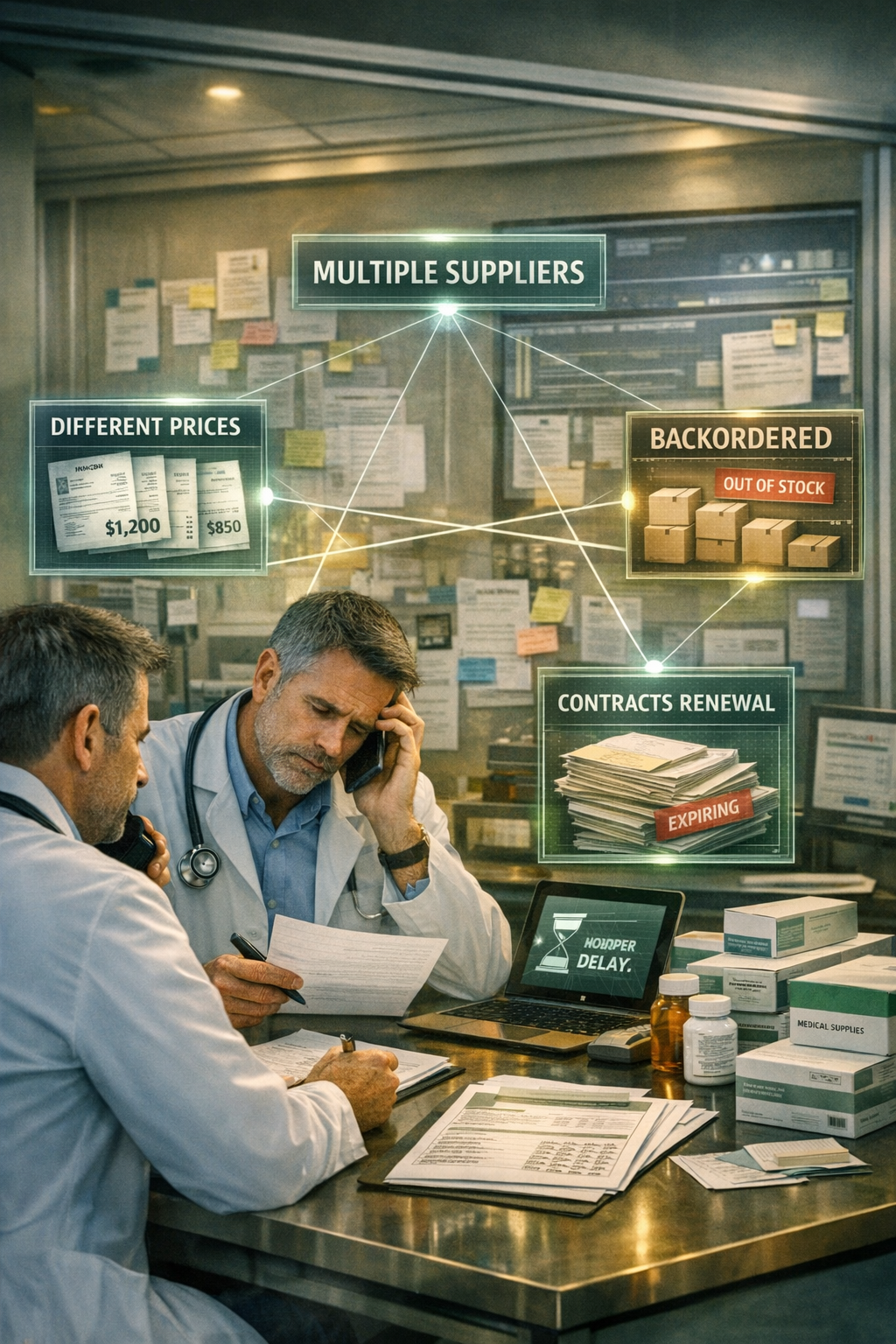 Many clinics manage multiple suppliers, each with different pricing structures, contracts, and communication processes. This fragmentation leads to inconsistent pricing and administrative inefficiency.
