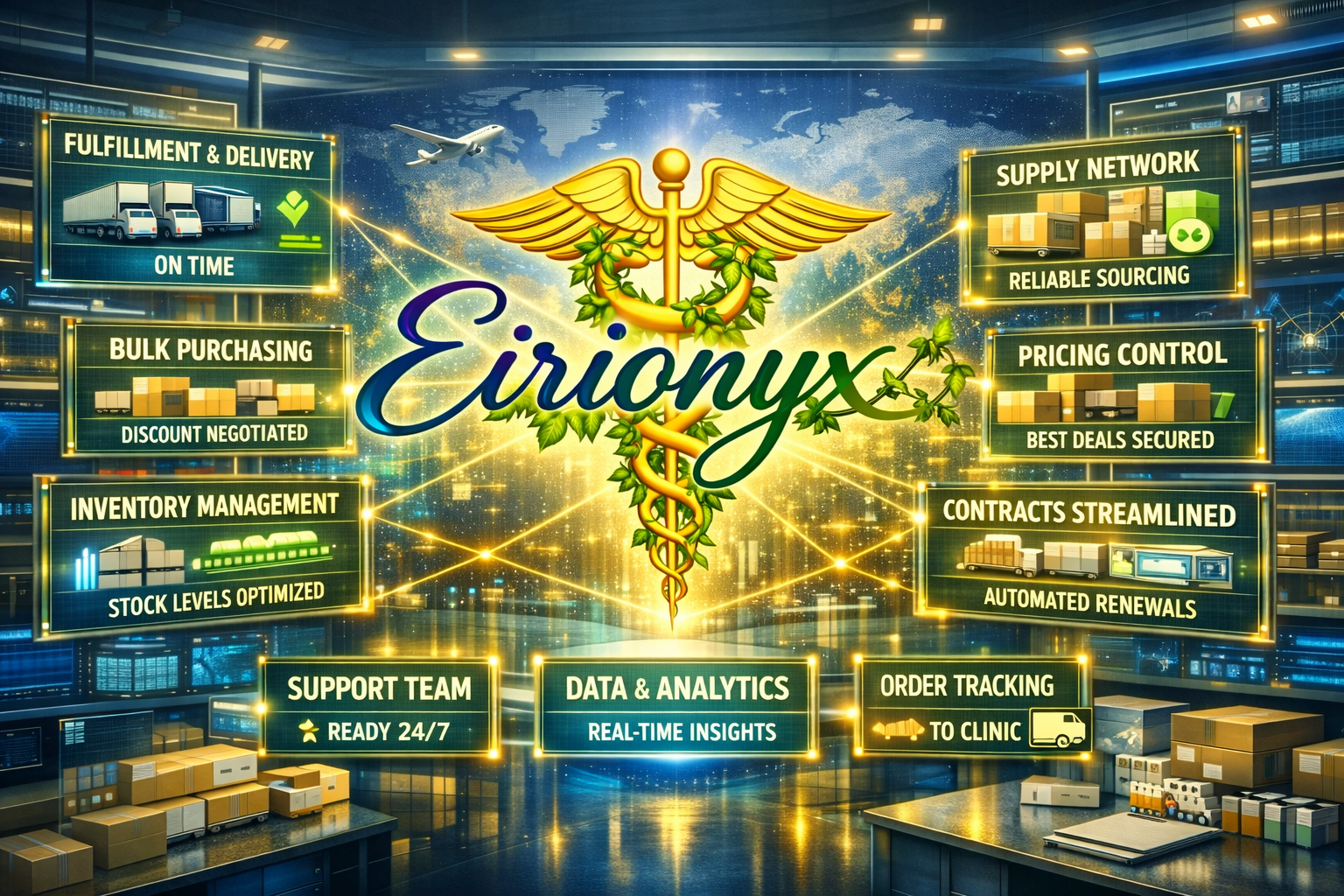 Eirionyx reduces fragmentation by aligning clinics and suppliers through a unified procurement strategy.